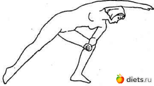■ Сгибаясь в талии, постарайтесь посмотреть как можно дальше позади себя. Вы почувствуете, как это влияет на растяжку.