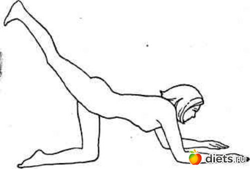 Начальная поза: встаньте на руки и колени и вытяните прямую правую ногу в сторону, под прямым углом к телу. Правая ступня должна быть на полу.