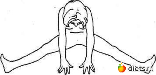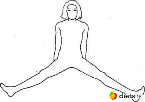 ■ Если вы не чувствуете, как тянется внутренняя поверхность бедра, это означает, что ваши ноги расставлены недостаточно- широко. Если вы давно не растягивались, вам будет это делать довольно сложно. Не теряйте упорства!