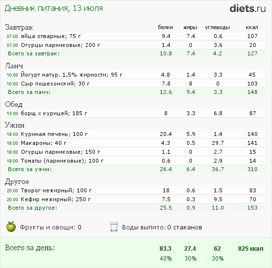 Держу его как образец, но почему-то обычно не удается так вписаться, перекос идет, жиров больше, а белков и углеводов не хватает. И так беру все обезжиренное, куриное филе - самое нежирное мясо, из жиров - масло сливочное чуть-чуть, и орехи иногда. И все равно не получается баланс соблюсти.