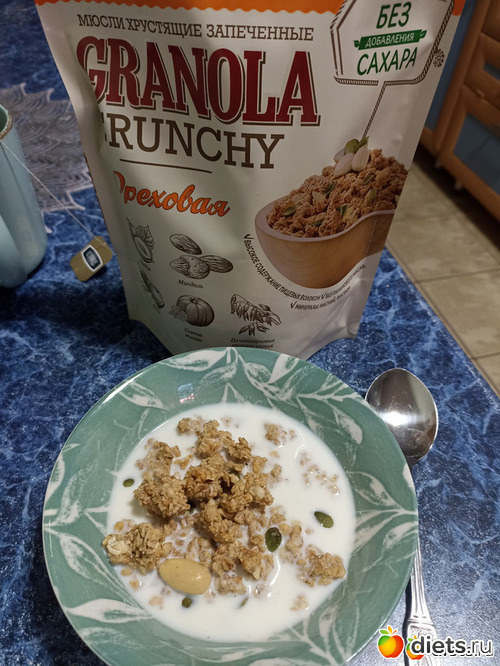 Ореховая гранола Bionova (crunchy) — это запеченные без сахара хрустящие мюсли, состоящие из цельнозерновых овсяных хлопьев, орехов (фундук, миндаль), семян тыквы и кокосовой стружки. Содержит натуральный подсластитель эритрит, растительные пищевые волокна (инулин), отруби и подсолнечное масло.