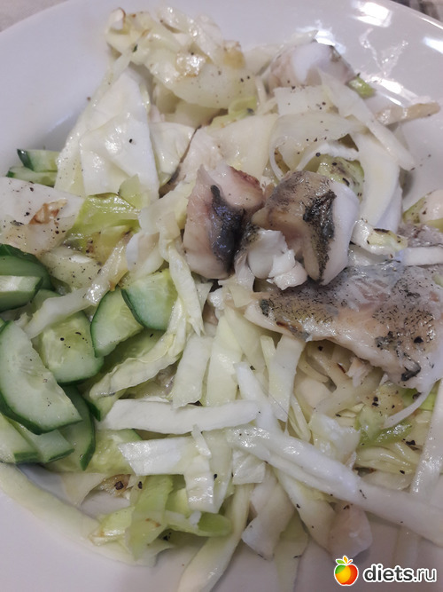 За первый день отвес 1кг. Нужно морально настроиться. Обед второго дня просто шикарный) Салат и товарная рыба.