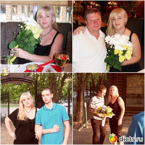 В мае 2013г было 103 кг...на этом фото чуть меньше -99 кг.Был Дюкан 2 месяца.,затем подсчёт калорий...Отпуск..+3 кг и опять Подсчёт калорий..сейчас вес удерживаю,а после Н.Г. продолжим дальше процесс...Фото ПОСЛЕ -случайное (сын щёлкнул) .не очень удачного качества,но вот на нём я заметила,что ушли немного руки за последние недели,да и спорт немного подключила -КАТОК (пока раз в неделю по 2 часа) и немного дома упражнения на руки и степпер для ножек.... Как раз дам время коже подтянуться пока вес удерживаю...Да! забыла написать -не просто сейчас удерживаю вес,а "разгоняю" обмен веществ постепенным поднятием калорийности.