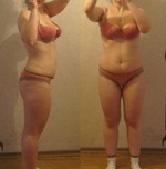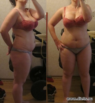Итак я родила прекрасного малыша в январе 2013года, вес 66 кг. Никуда сам уходить не собирался. Я пыталась охранить ГВ, была после кесарева и поэтому ни о каких диетах и физ.нагрузках даже и не думала. Фотография "до" сделана в июне. Через полгода после родов я все-таки пошла в тренажерку. Хватило меня на 3 месяца. Я подтянулась, похудела только на 2 кг, т.к. диету на соблюдала и продолжала есть булки и печеньки. Вскоре все вернулось и я забила на себя до ноября. В ноябре я твердо решила похудеть. Сели с мужем на средиземноморскую диету, питались так до НГ, потом я сорвалась. Похудела на этой диете до 60 кг, но срыв вернул сразу 2 кг. Весь январь я ела как хочу, но на тот момент я полностью отказалась от чая с сахаром (раньше пила чашку 250мл с 3-мя ложками сахара) и от майонеза, это дало свои плоды. В феврале я снова взялась за себя и отсидела на двух кругах 6 лепестков, похудела на 4 кг, потом перешла на 90 дневку и подключила занятия с Джиллиан Майклз "Похудей за 30 дней", сейчас я только на 2-м уровне. Прошла треть 90 дневки и похудела где-то на 2.5кг. В заключении: активно начала худеть в ноябре и по сей день. За это время (ноябрь-март) скинула 10кг. Понимаю, что надо еще кг 7-8 минимум, но пока цель-50кг. Вот такая моя история. Всем спасибо за внимание!