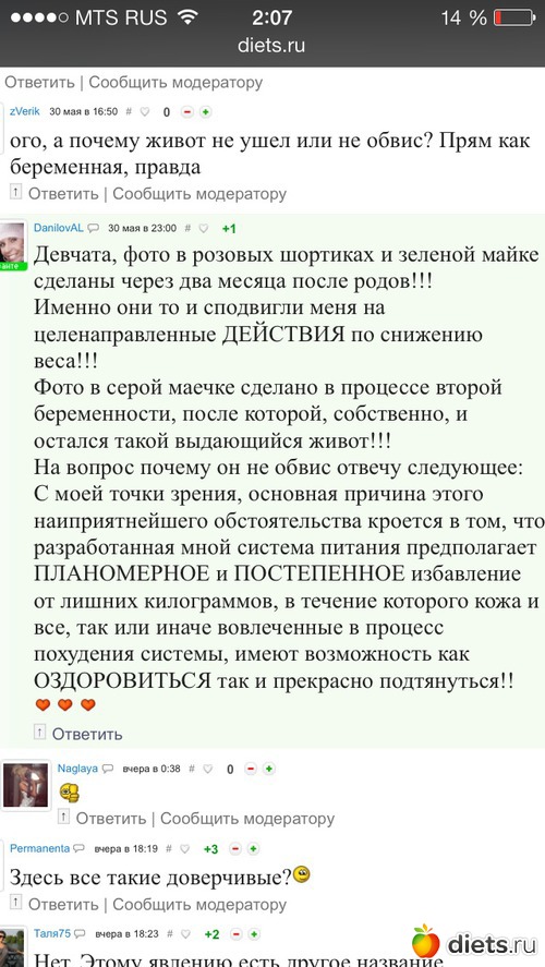Для меня любой, кто скинул хотя бы 5 кг- уже МОЛОДЕЦ! Любое движение в направлении мечты и целей достойно похвалы и уважения! Ведь Аня не притендует на победу в супер быстрой и ефективной диете, это же не 20 кг за 2,3,4 мес! Она просто показывает, что и нормально питаясь и задействуя силы своего организма можно прийти к поставленной цели!