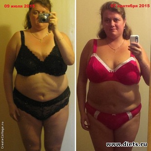 Итог за два месяца: минус 14,5 кг, минус по 11 см в объемах груди, талии и бедер.
