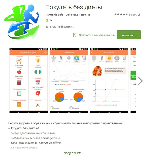 хотела спросить : а можно поподробнее про программу на андроид "Похудеть без диеты". - набрала в плеймаркете а там такая куча программ, а с полностью таким названием только на англ - или я не нашла...хотелось бы удобную и проверенную..