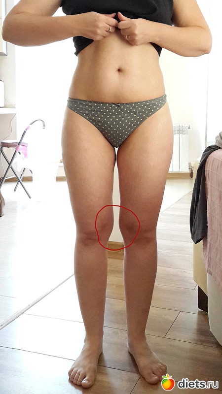 вот здесь мой вес порядка 63кг, и я пометила места на коленях которые меня напрягают