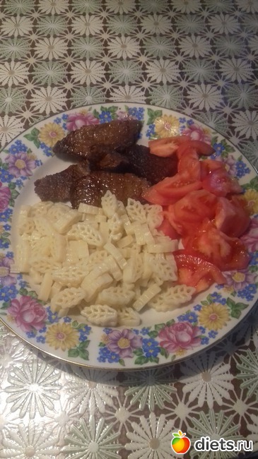 По еде: из мяска - куриная грудка (тушеная, вареная запеченая), говядина (тушеная, отварная); из рыбы - треска, хек, минтай (отварная, тушеная под маринадом); овощи - ем любые, мой девиз помимо тушеных в обязательном порядке немного хоть 100 гр. сырых (помидорка, огурчик, капустка и т.д. ); в рационе так же яйца, макарошки из твердых сортов пшеницы (сейчас только перед тренировкой, ибо углеводы не много урезаю