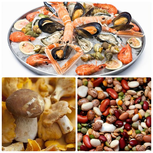 Больше всего брома в морепродуктах (250мг/100 гр), столько же в грибах. В фасоли, горохе, ячневой, гречневой, пшеничной крупе брома примерно 75 мг/100гр.