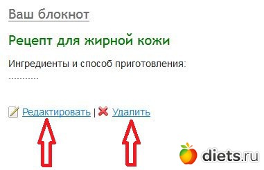 6. Нажав на любую запись блокнота можно произвести удаление или редактирование.