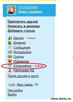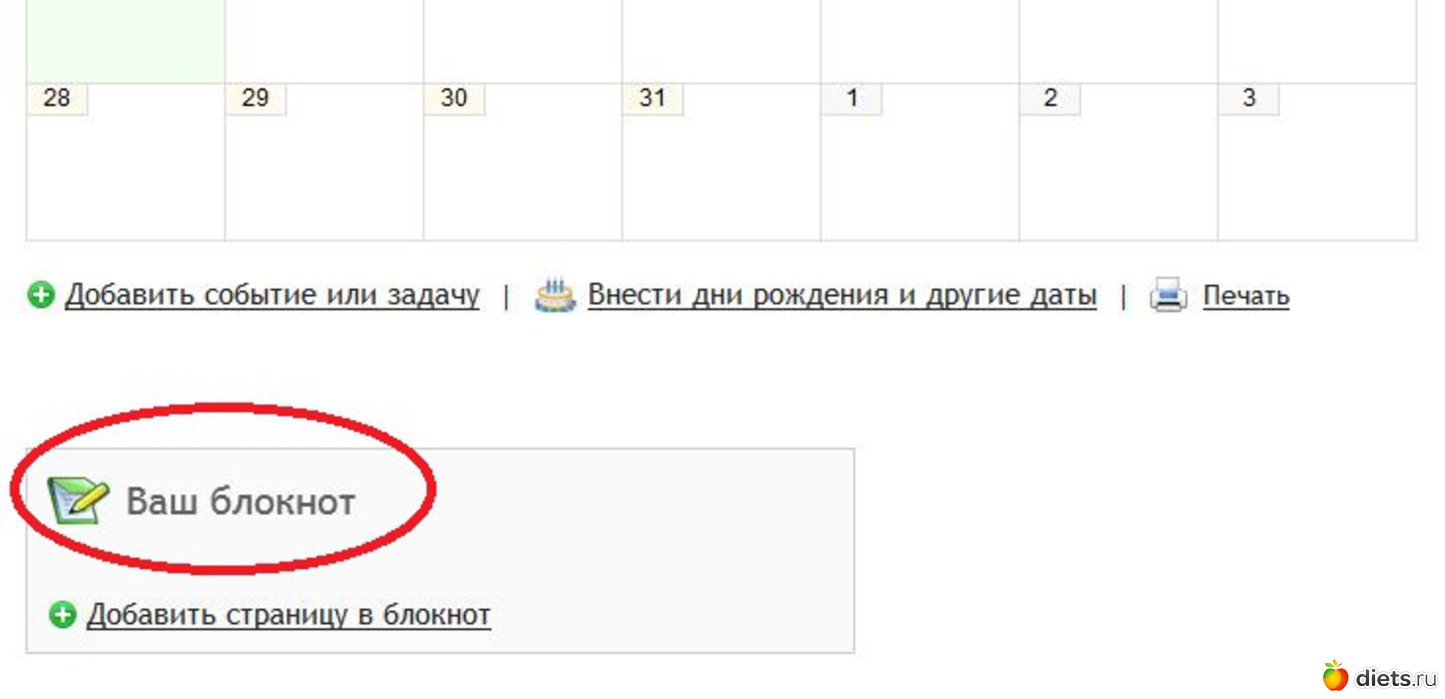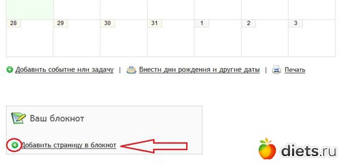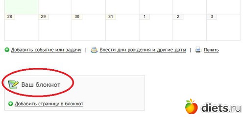 5. После добавления записей в блокнот, найти последний вместе с содержимым можно, зайдя в опцию "Ежедневник"и прокрутив страничку вниз.