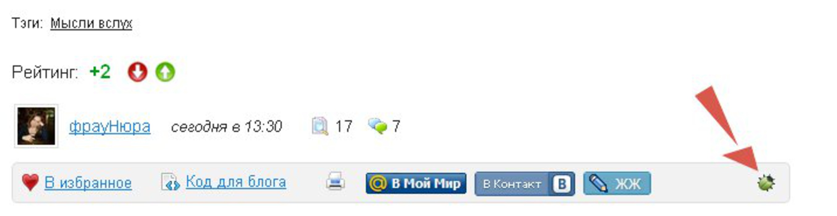 запись . Под каждым материалом, в строке под датой и именем автора расположен значок. Нажимаем на него.