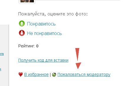фотография. Под фотографией, под именем автора фотографии, чуть ниже есть кнопка «Пожаловаться модератору». Нажимаем ее, если уверены, что размещение данного фото нарушает правила проекта Diets.ru