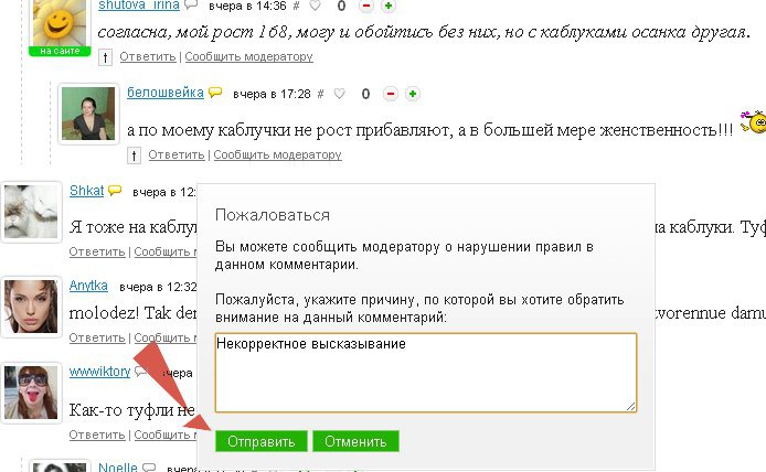 После этого нажмите на кнопку "отправить", и в самое ближайшее время модераторы проекта отреагируют на жалобу.