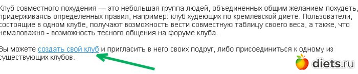 Пожалуйста, внимательно пересмотрите этот перечень. Быть может клуб, который вы хотите создать по понравившейся вам диете, уже ждёт новых участников.