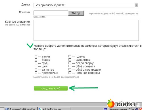 В клубе вы будете худеть в коллективе единомышленников по выбранной вами диете. Там же вы можете с членами клуба обсуждать диету.