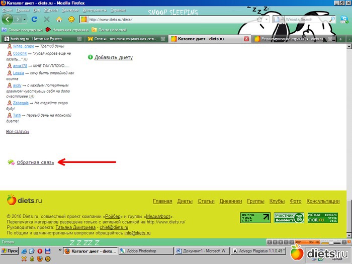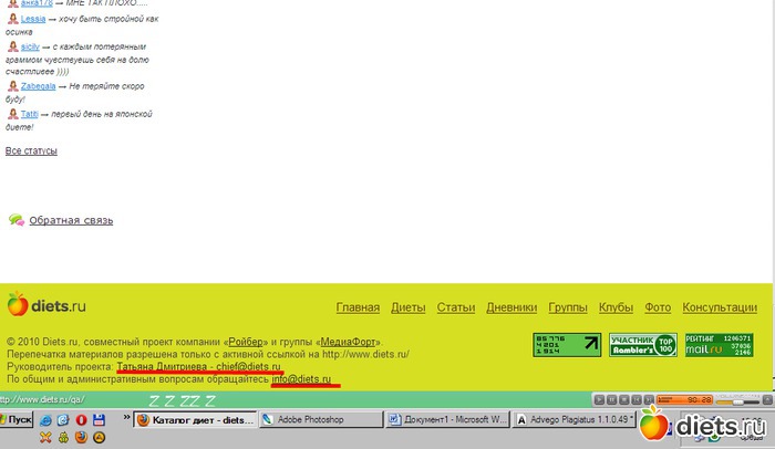 Правил сайта Diets.ru другими пользователями, к ним необходимо обращаться в случаях, если вам непонятны какие-либо положения правил проекта.