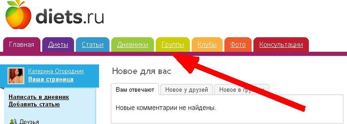 Чтобы найти новых друзей и объединить вокруг себя людей со схожими интересами, есть смысл создать тематическую группу. Чтобы создать группу, найдите на главной странице вкладку оливкового цвета под названием "Группы".
