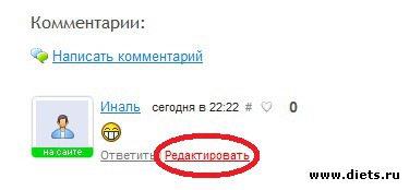 Если после публикации комментария вы видите, что допустили в нем ошибку и хотите ее исправить, то в течение пятнадцати минут с момента публикации вам доступна ссылка "редактировать"
