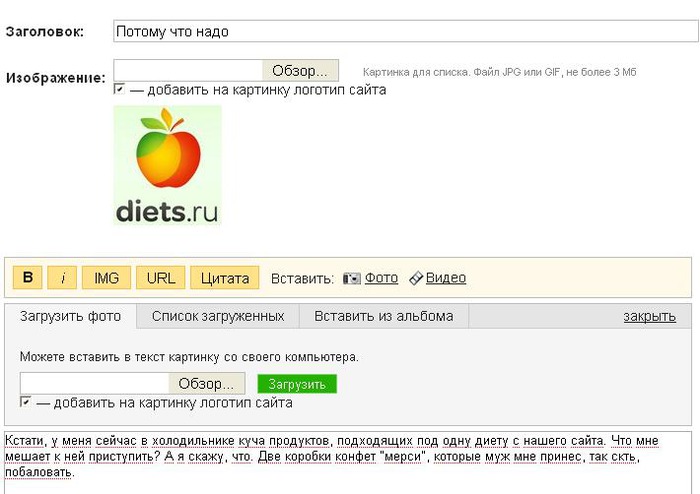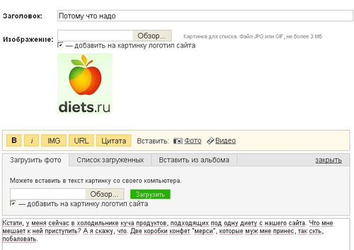 Фотографии в дневниковых записях и записях групп оживляют текст, придают ему наглядность и законченность. Фотографии в записях на нашем сайте могут быть двух видов: в качестве "превью" к записи, которая сопровождает текстовое превью, и которую видят все пользователи, даже не посещавшие запись; а также в качестве иллюстраций к тексту, и которых может быть какое угодно количество, в отличие от превью, которое всегда одно.