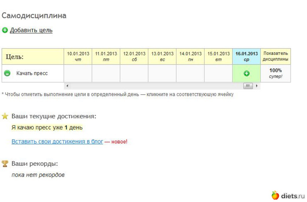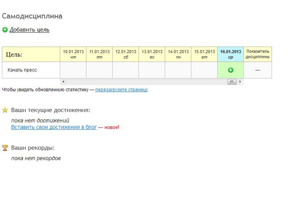 6. Вот таким образом будут отражаться ваши достижения по самодисциплине на вашей странице: