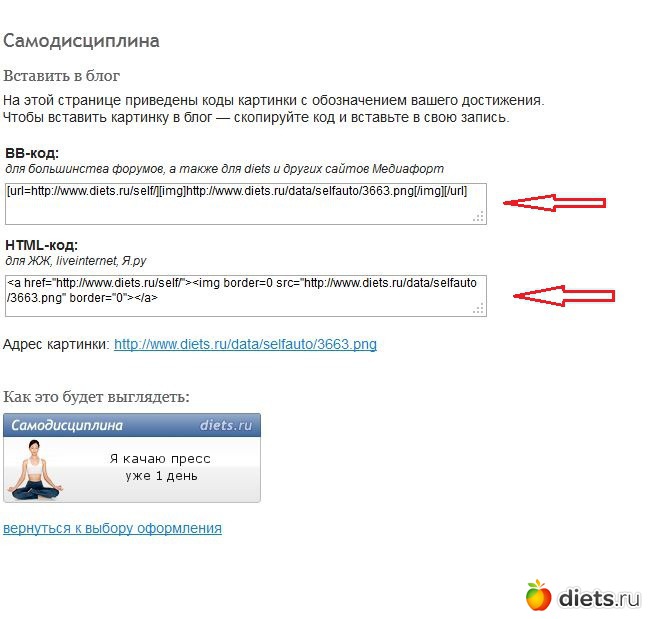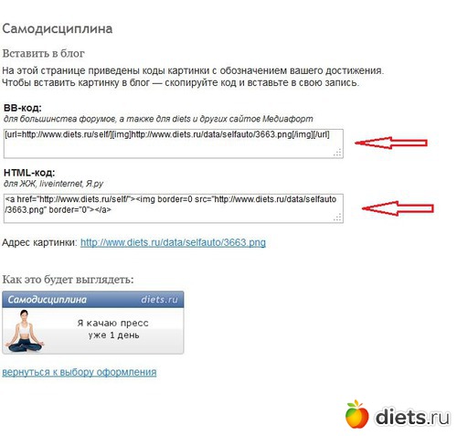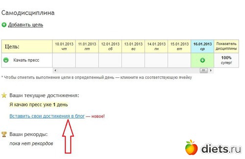 1. Нажать на "Вставить свои достижения в блог — новое!".