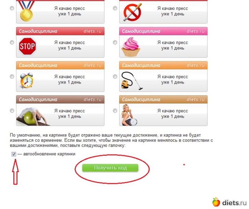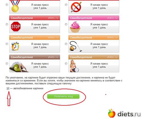 3. По умолчанию, на картинке будет отражено ваше текущее достижение, и картинка не будет изменяться со временем. Если вы хотите, чтобы значение на картинке менялось в соответствии с вашими достижениями, поставьте следующую галочку и нажмите зелёную кнопку "Получить код".