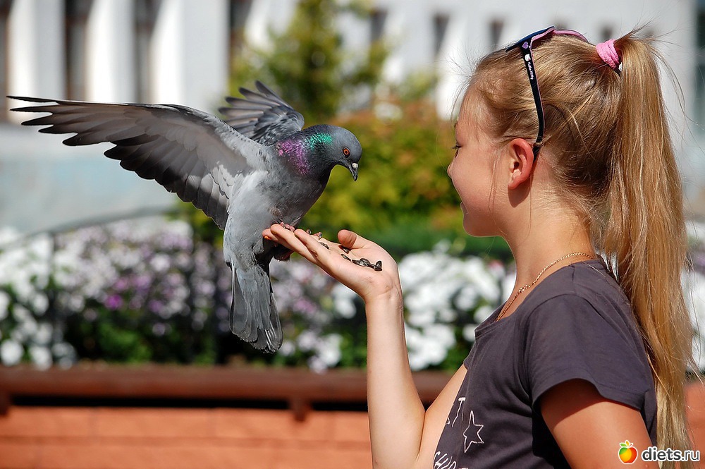 Моё любимое занятие! Качать, как на качелях голубя и кормить его с руки, этакого прожорливого орлана!))