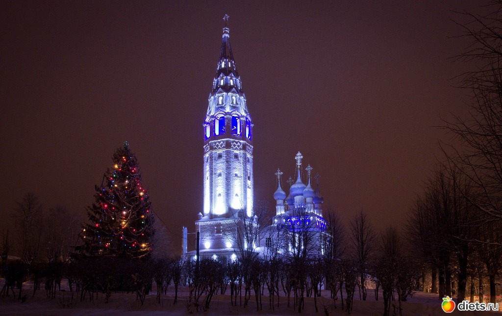 Очень красив Крестовоздвиженский храм, подсветка отличная, а рядом новогодняя ёлочка сияет огнями.Очень интересное фото, мне понравилось.