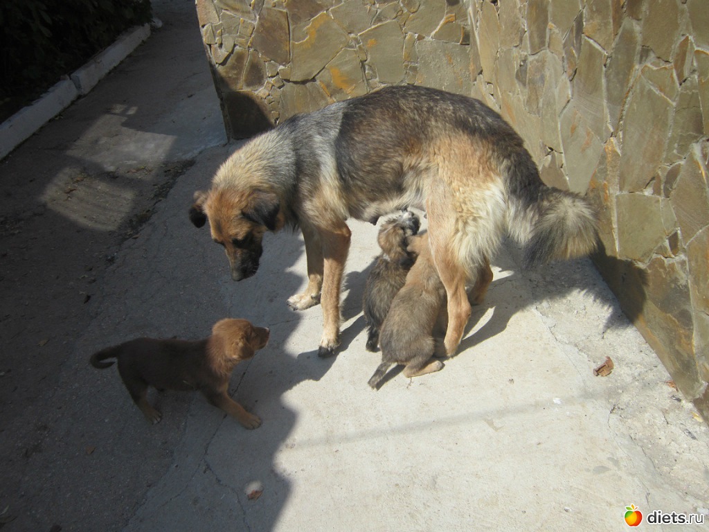 Это щенок не её, так скулил, хотелось даже себе забрать, потом она пустила и покормила его. Я наблюдала со слезами. Рядом стоял мужчина и сказал, что он их подкармливает, они бездомные.