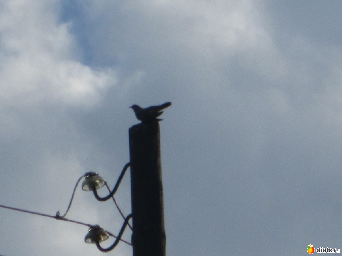 Ого, на столбе сидит! Я думала, что они только по лесу летают))