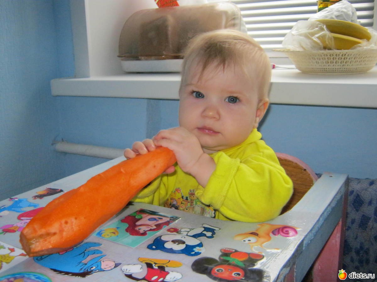 С раннего детства  моя дочурка Настюша учится кушать витамины! Большая морковка - для большой девочки!