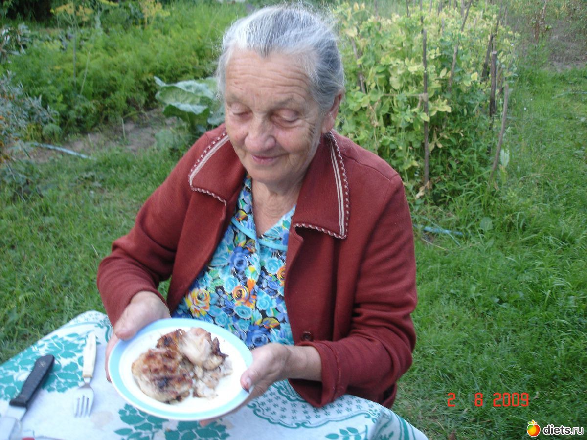 «Любимую бабушку балуем мясиком на углях.»