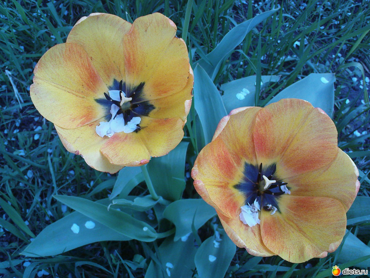 «Желтые тюльпаны в наряде из лепестков вишни»