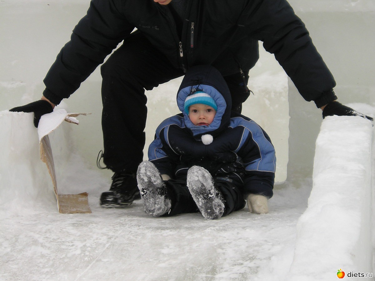 «Первый в жизни спуск с горы! Будущий спортсмен сосредоточен!»