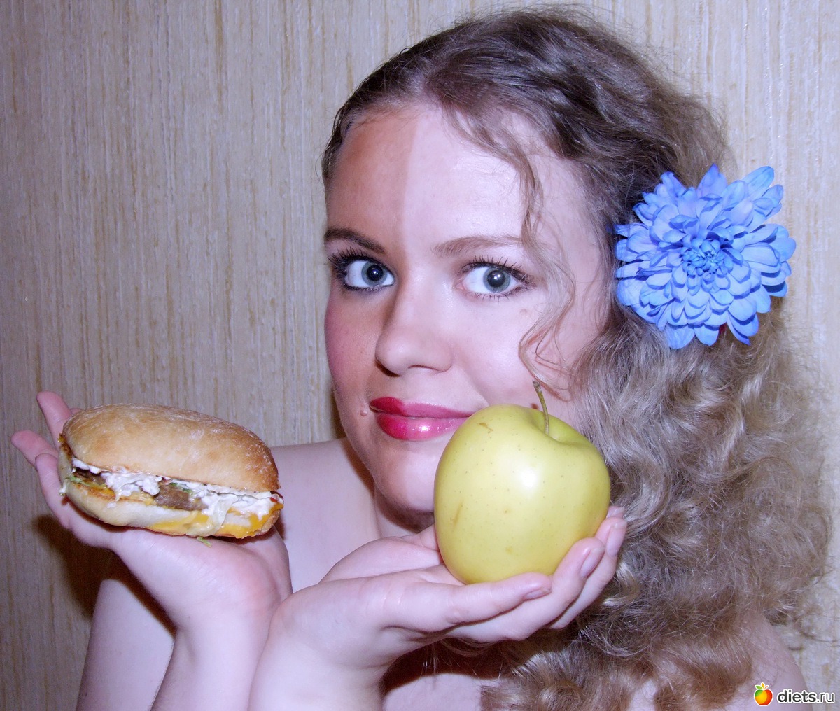 Конечно, это я. В подтверждение у меня еще порядка 200 фото на эту тематику- 100 с яблоком и гамбургером и 100 без них- искали ракурс.