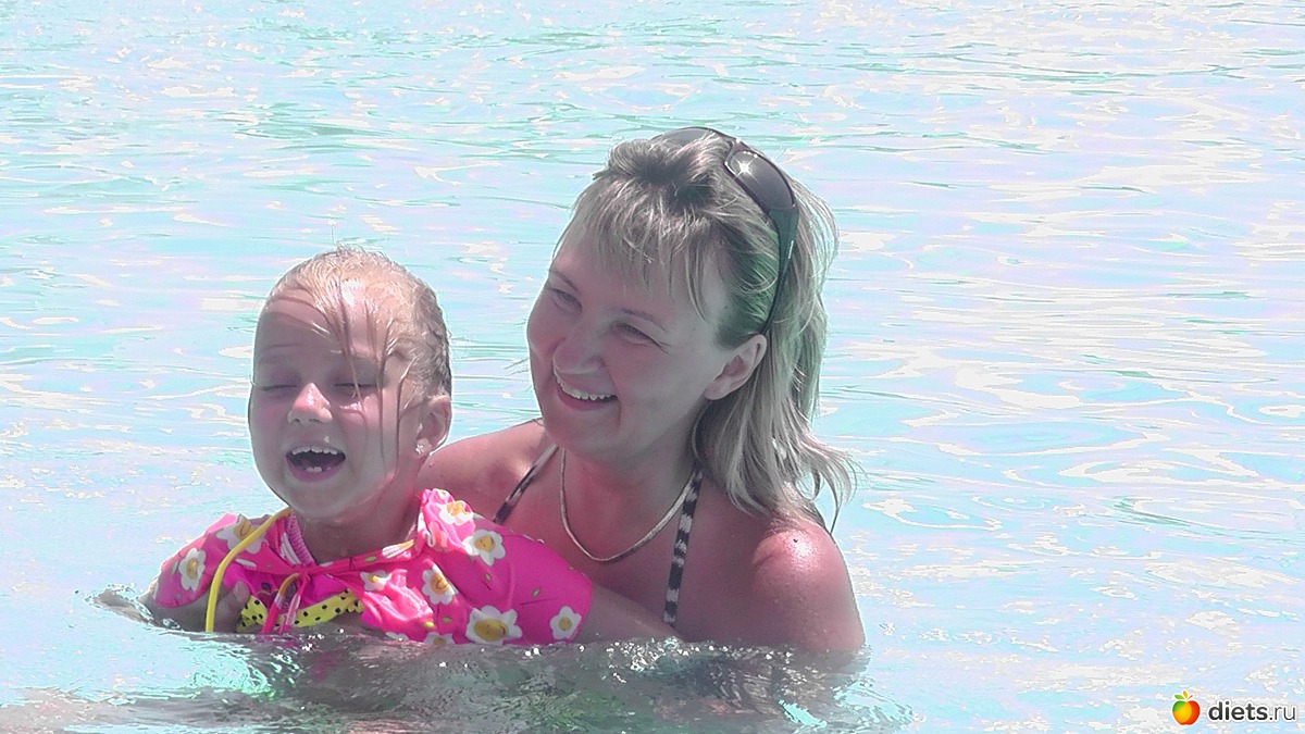 Учу плавать младшую дочь Ирочку. К отъезду из Египта мы научились проплывать 3-5м. на животе и чуть больше на спине.