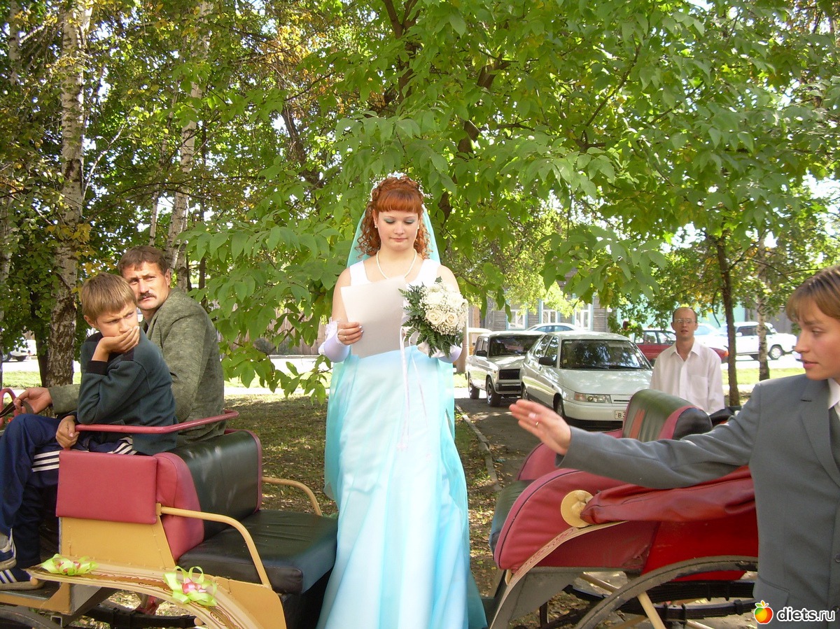 только я не хотела просто белое, поэтому самую верхнюю юбку шили из бирюзовой органзы, из нее же делали фату и заказывали бутоньерку и веночек лилий мне на голову...