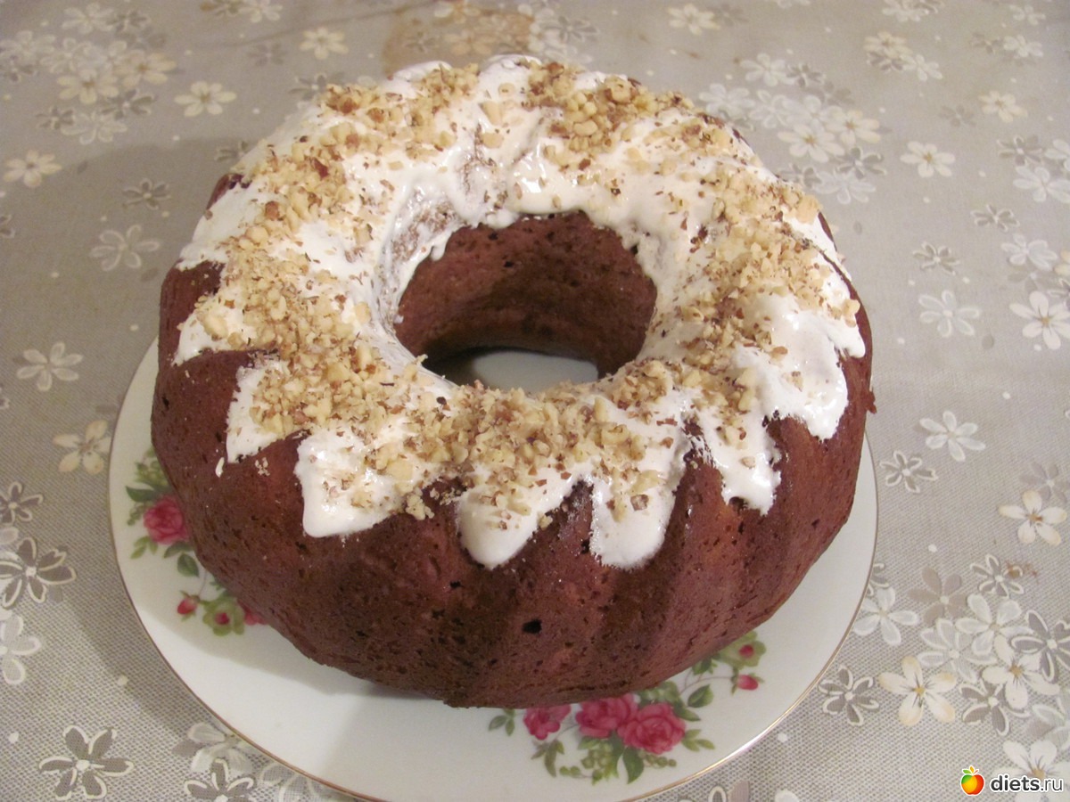 «Ромовый шоколадный кекс с глазурью и орехами.»