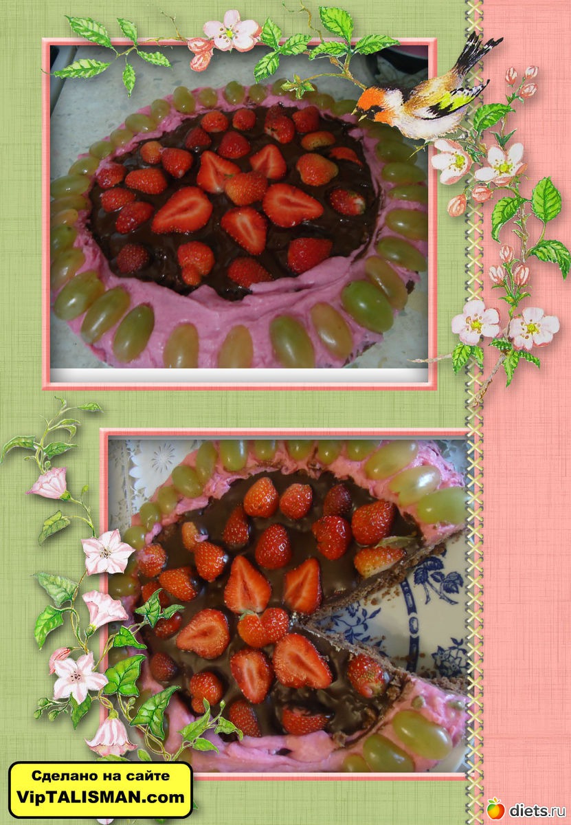 тортик..клубника в шоколаде..рецепт из инета...по краю тортика крем клубничный и виноград