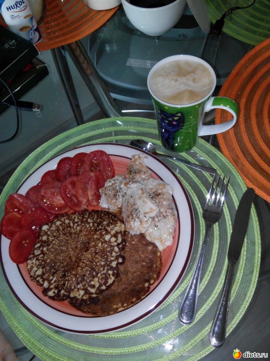 Завтрак с блинами индейкой и помидорами, альбом: Я то, что я ем. Похоже я блин..