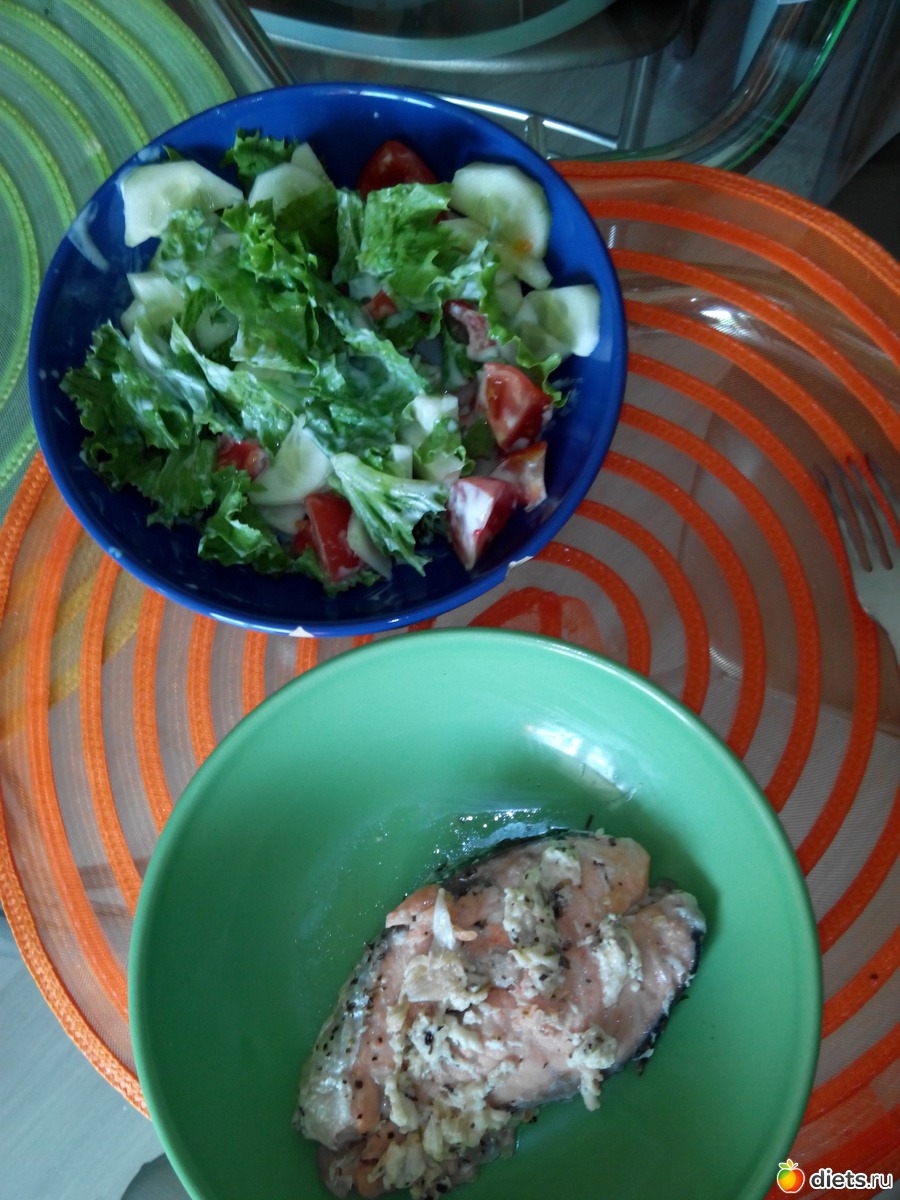 Форель с прованскими травами в молочном соусе с салатом с заправкой из йогурта, альбом: Я то, что я ем. Похоже я блин..