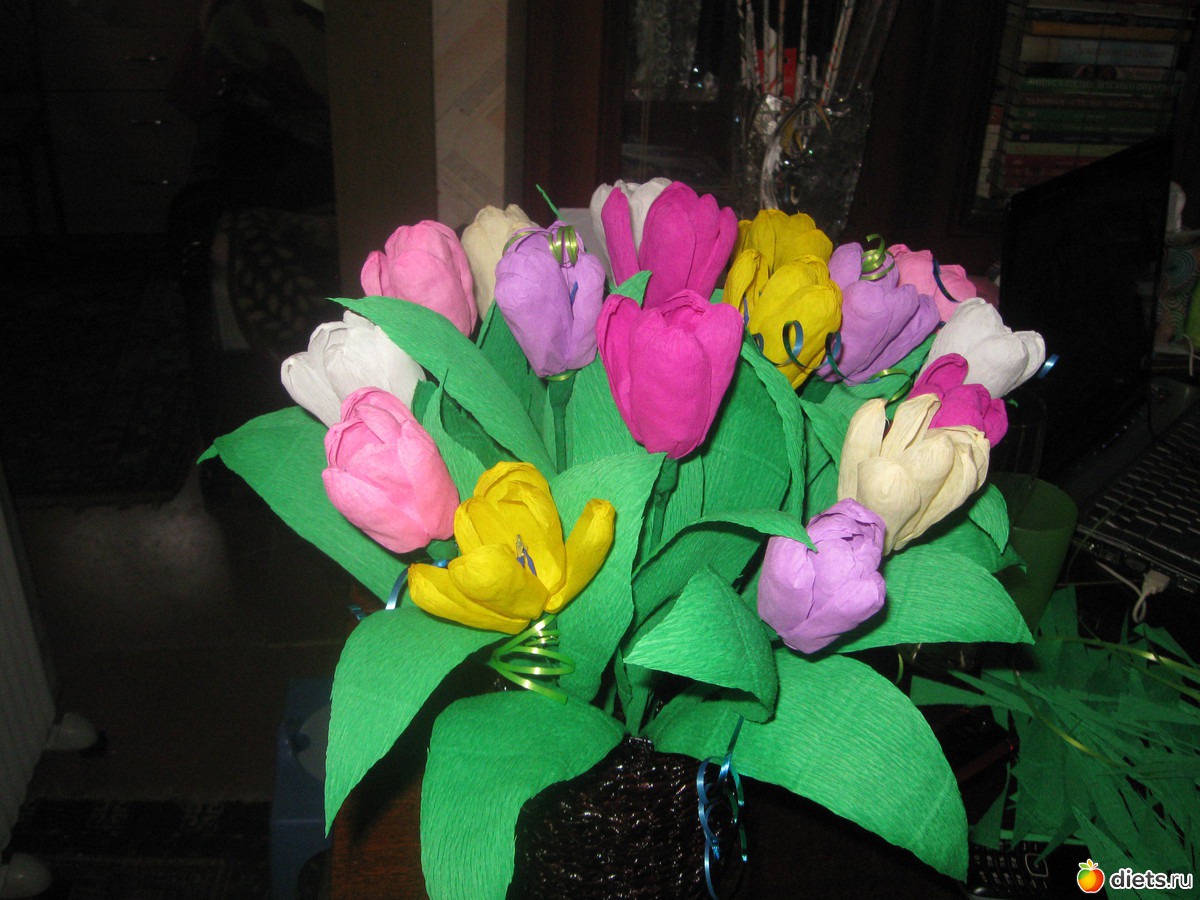Тюльпаны (гофробумага), альбом: Мое хобби-работа РУКОДЕЛИЕ-плетение из бумажной лозы