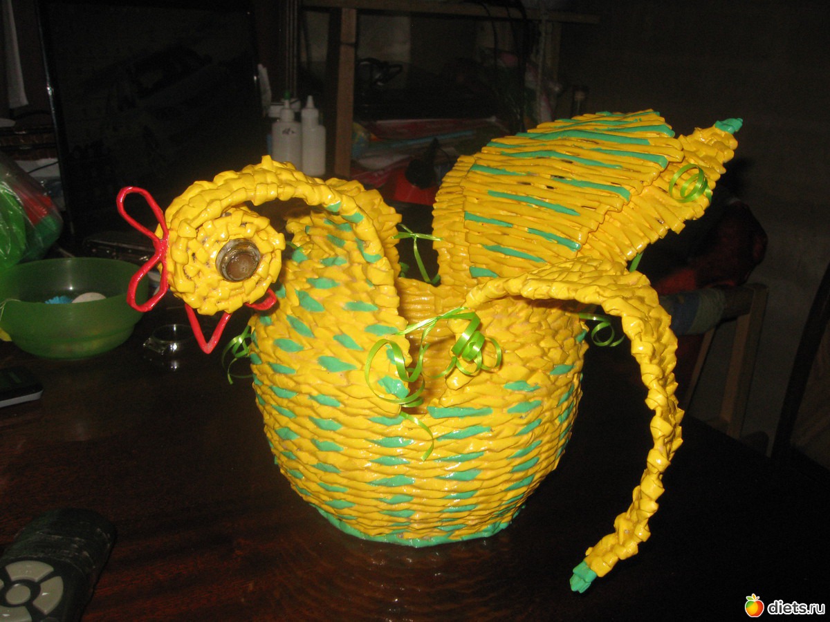 Корзинка Курочка Ряба (плетение из газетной лозы), альбом: Мое хобби-работа РУКОДЕЛИЕ-плетение из бумажной лозы