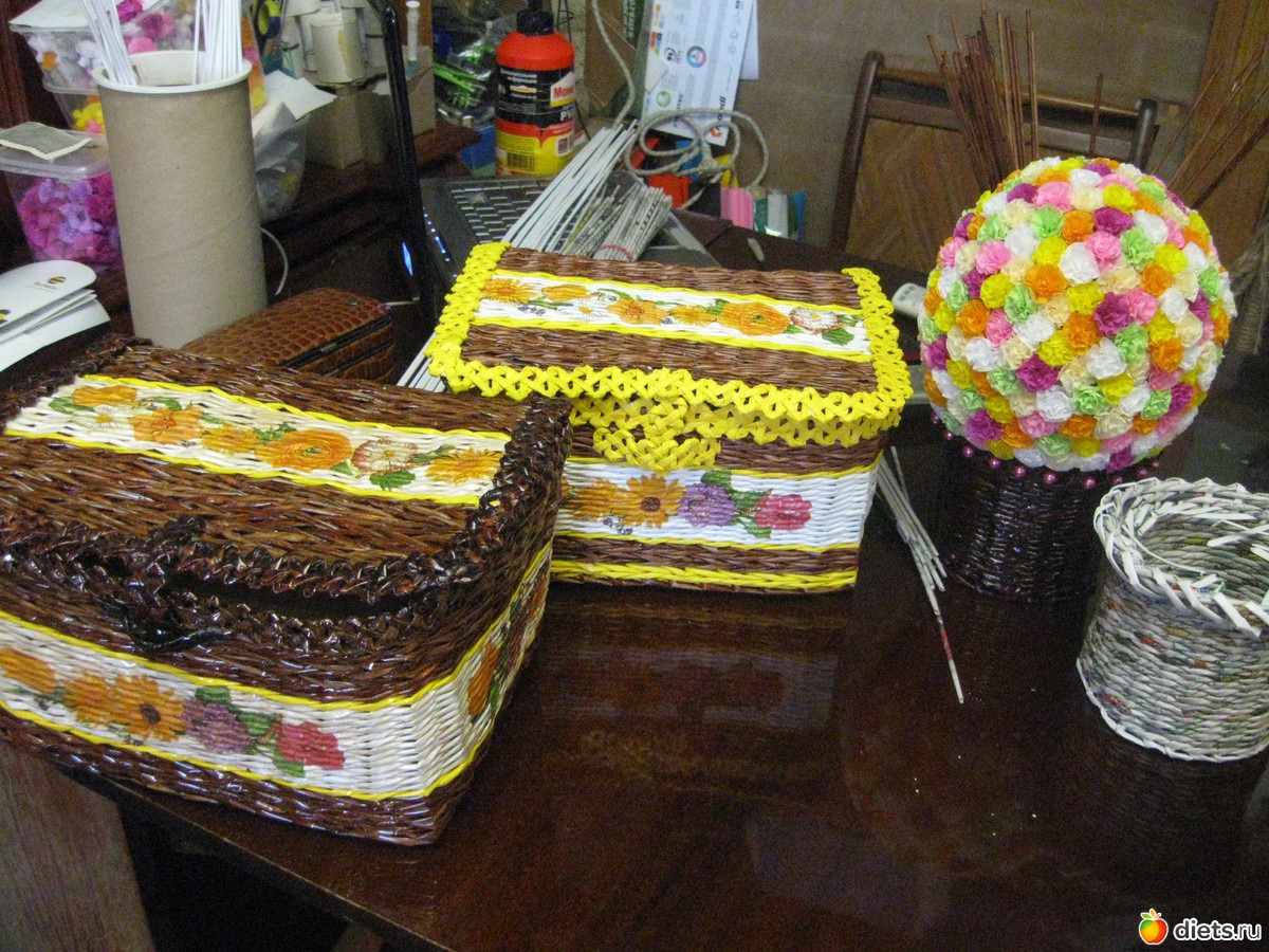 Сундучки, цветочный шар (плетение из газетной лозы), альбом: Мое хобби-работа РУКОДЕЛИЕ-плетение из бумажной лозы