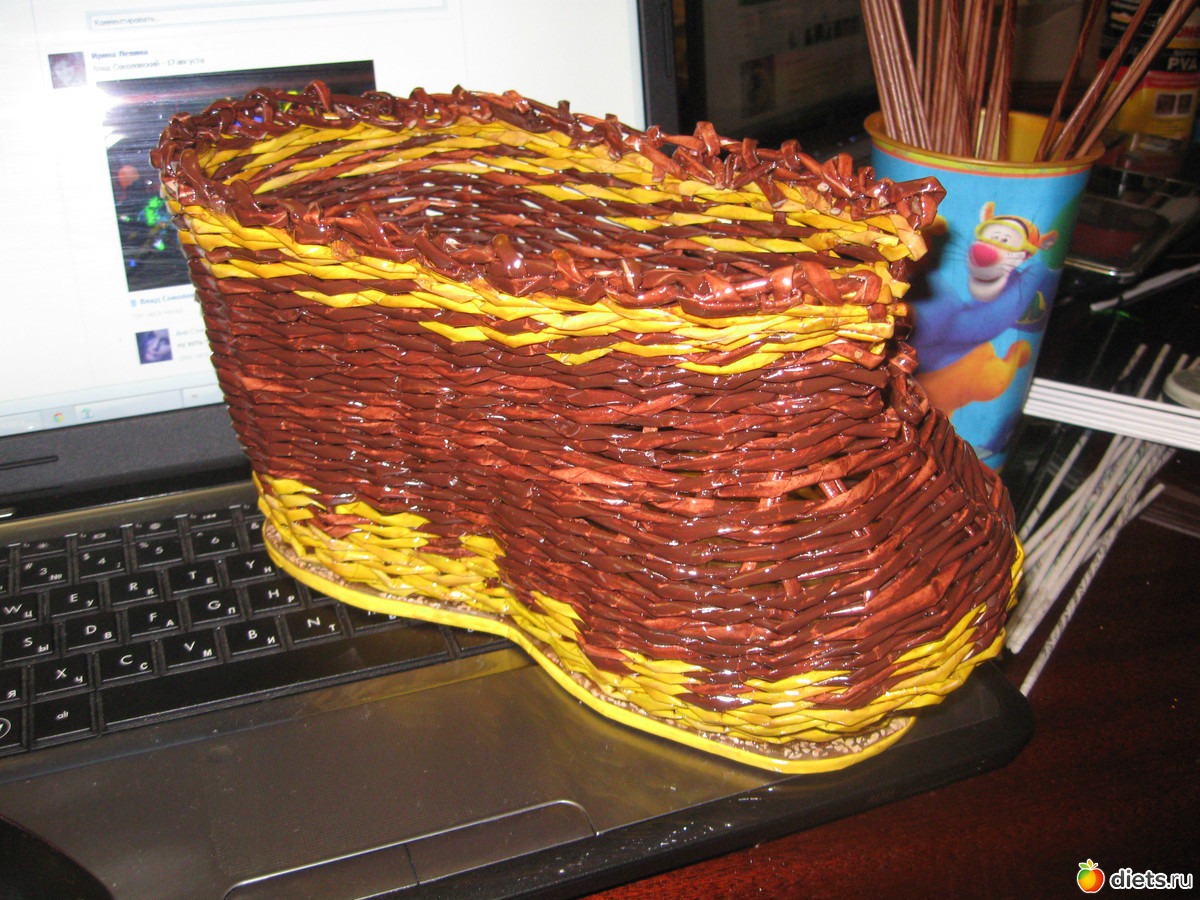 Башмак-кашпо (плетение из газетных трубочек), альбом: Мое хобби-работа РУКОДЕЛИЕ-плетение из бумажной лозы