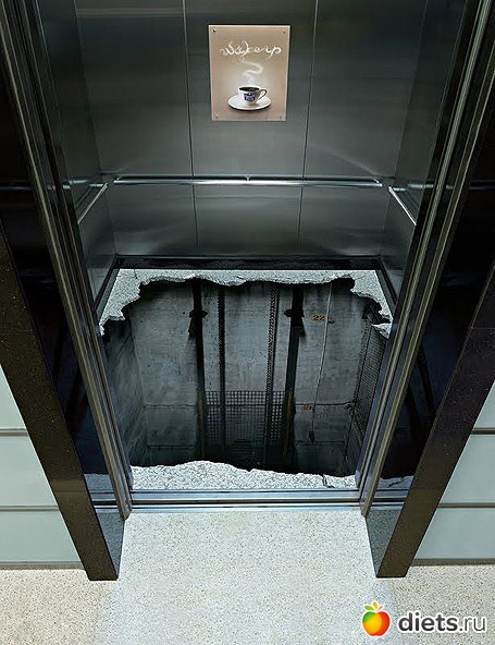 3D рисунок в лифте! Я бы испугалась!, альбом: Демотиваторы!