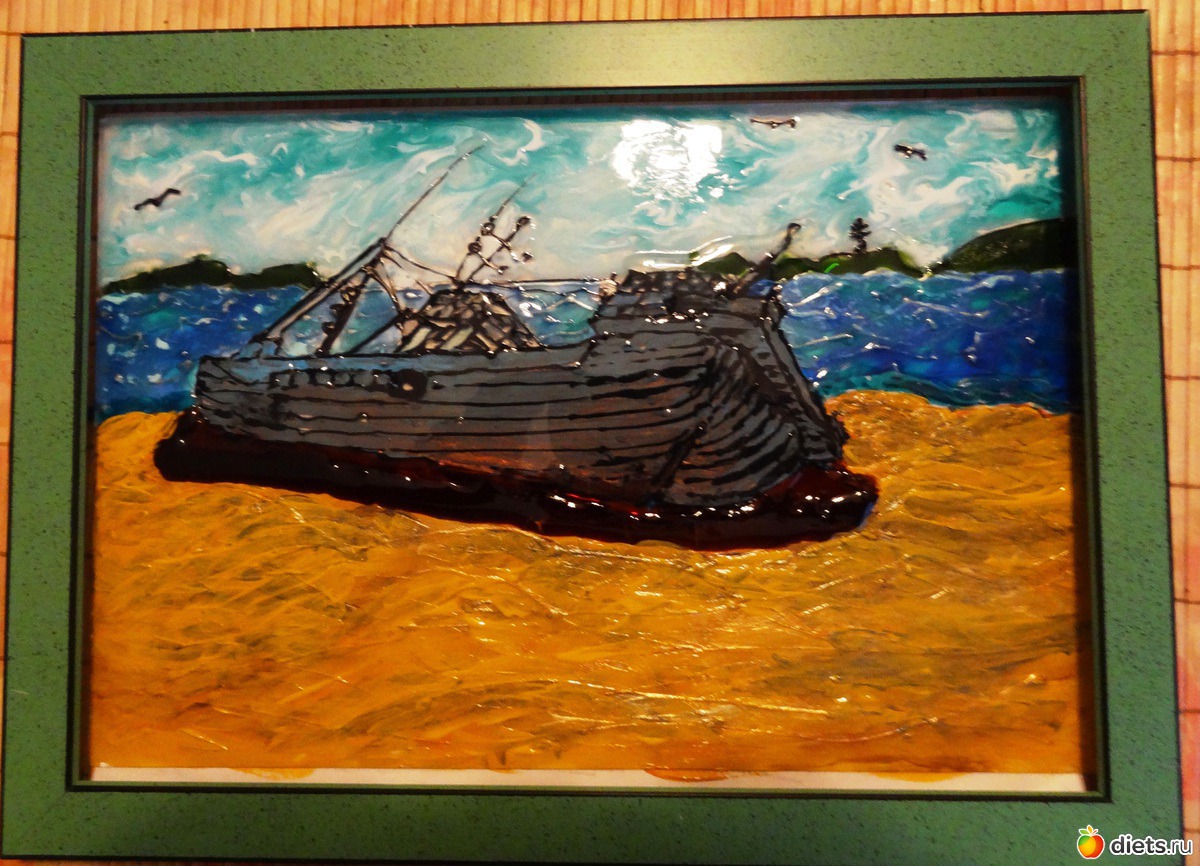 Баркас этот рисовала с натуры в Китае, сейчас перенесла на стекло., альбом: Своими руками...