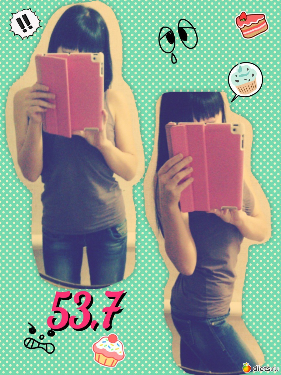 По прежнему 55кг, но спорт все-таки потихоньку меняет тело:)